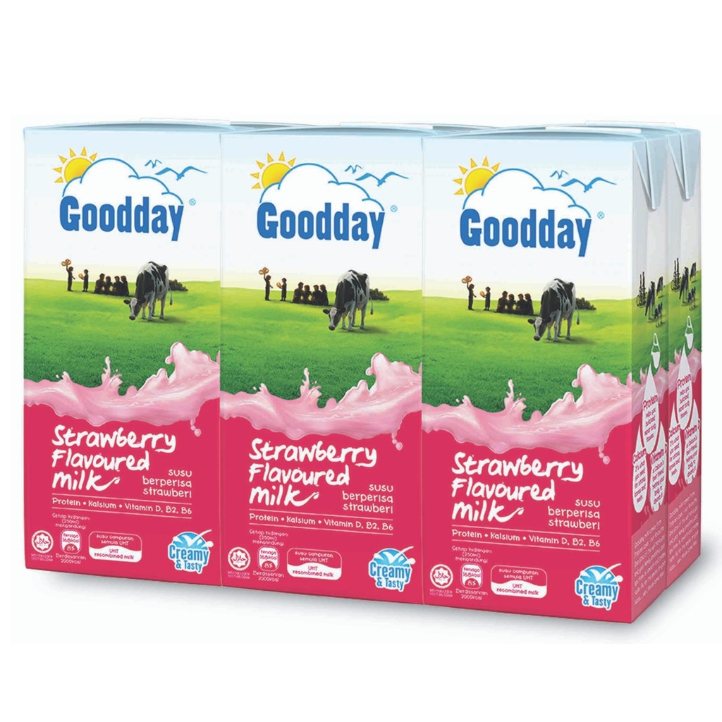 Good Day per 10 sachet 20 gr. Goodday New Ready Stock Uht Milk Susu 6 X 200Ml BananaFull CreamLow FatChocolateKurmaStrawberryHoney RM 1050. Goodday Uht Low Fat Milk 6 X 200Ml RM 970.